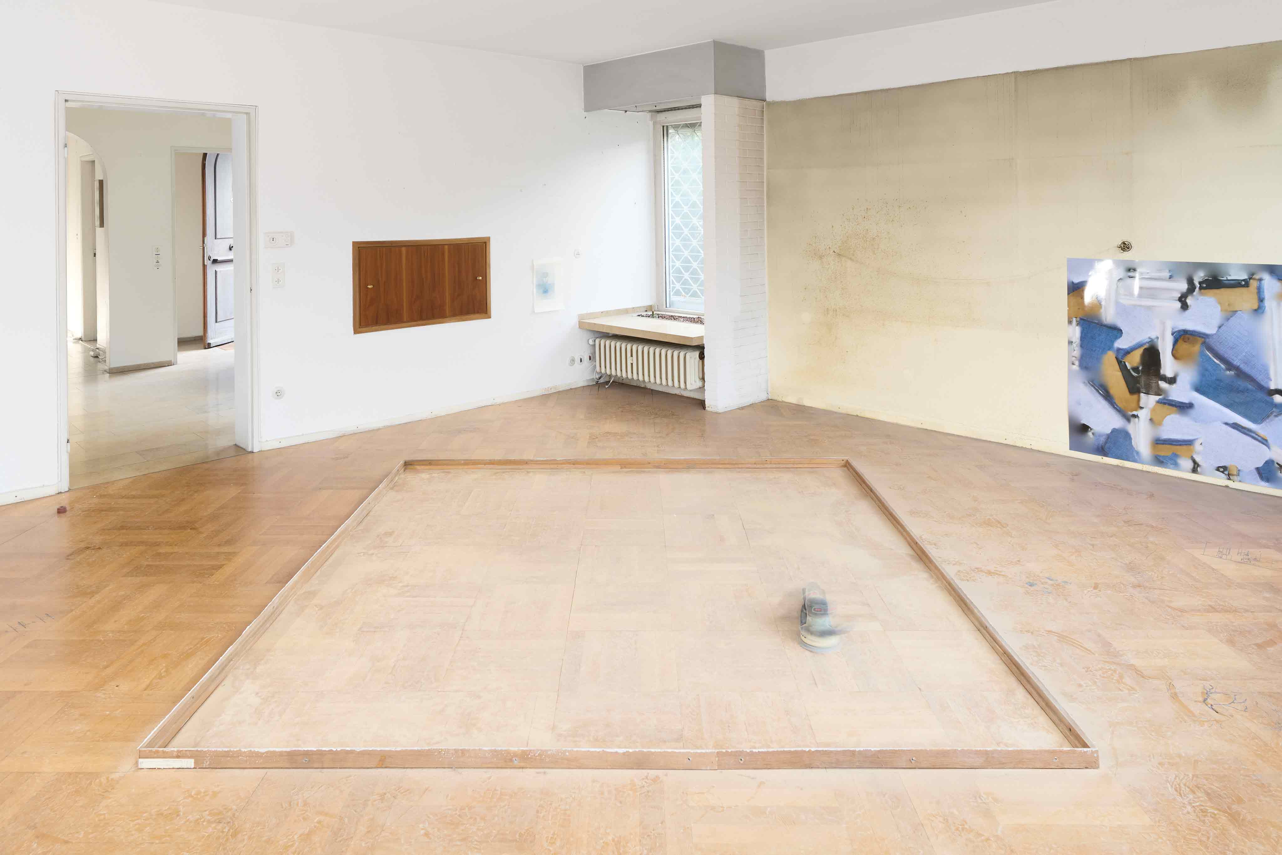 Random orbital sander, parquet flooring, baseboard, dust
